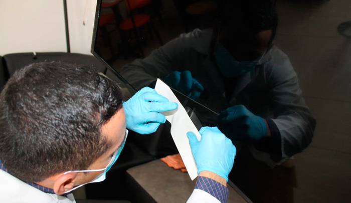 “En el televisor se apreció, de manera simultánea, marcas dejadas por el contacto con las falanges, por lo que se aplicaron diferentes reactivos físicos, logrando revelar 21 fragmentos dactilares, para posteriormente llevarlos a las impresiones latentes”, explicó el investigador.