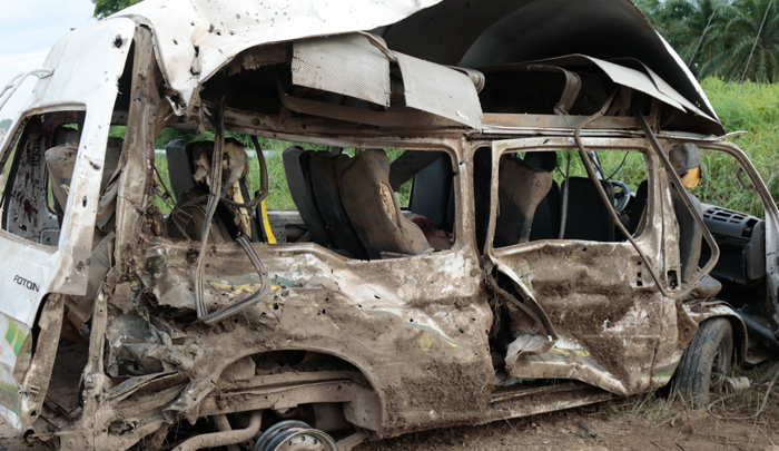 Así quedó la buseta en que se desplazaba la comisión judicial a la vereda Socuavó.