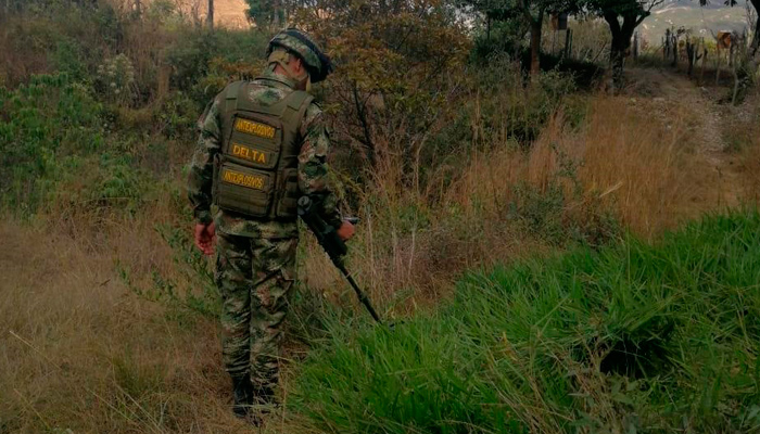 Según el Ejército, el artefacto estaba preparado con aproximadamente 15 kilos de material explosivo y presuntamente fue dejado por la compañía Capitan Francisco Bossio del Eln.