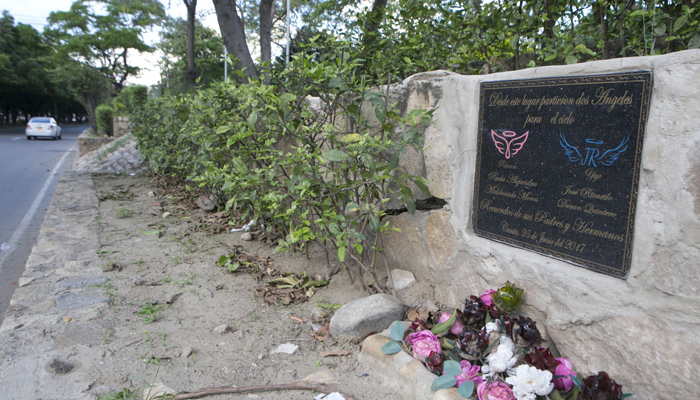 (En el lugar de los hechos, los familiares de las víctimas fatales dejaron una placa.)