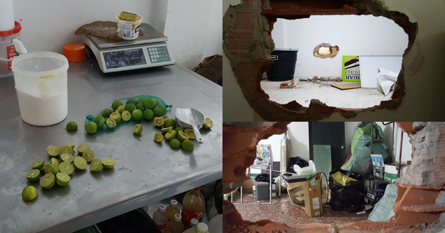 De acuerdo a la inspección realizada por funcionarios del CTI de la Fiscalía y de la Policía, los bandidos primero abrieron un hueco para ingresar al local en arriendo y seguidamente rompieron las paredes hasta llegar a la casa de apuestas deportivas.