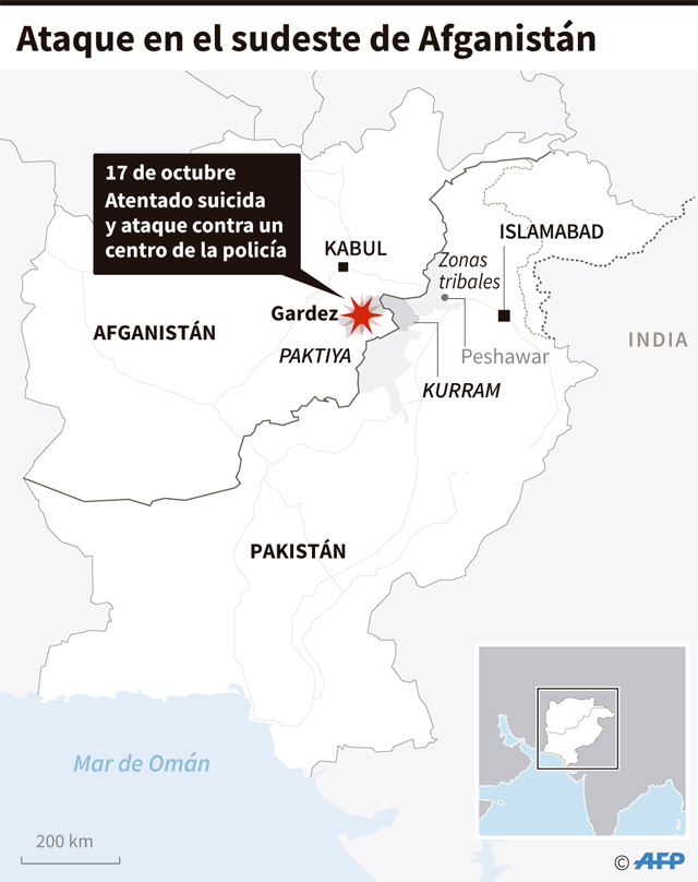 En un comunicado, la oficina del gobernador de Paktia mencionó igualmente la muerte de "seis atacantes" y confirmó que el jefe de la policía provincial, Toryalay Abdani, murió cuando comenzó el ataque.