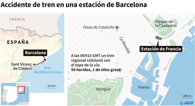 El tren, que salió a las 06:00 de Sant Vicenç de Calders (unos 70 km al al suroeste de Barcelona), "al entrar en la Estación de Francia ha chocado contra el final de vía", explicó un portavoz de Protección Civil.