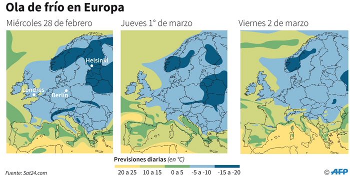 El fenómeno climático ya tiene varios apodos: ‘La Bestia del Este’ para los medios británicos, ‘El Oso de Siberia’ en Holanda, el ‘Cañón de nieve’ en Suecia. Esta ola de frío ha provocado al menos 46 muertos desde el viernes.