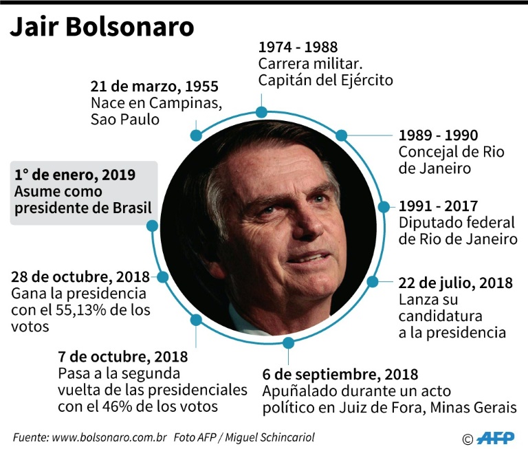 Bolsonaro, que realizó su campaña casi enteramente por redes sociales, fue elegido en el segundo turno, el 28 de octubre, con el 55% de los votos frente al candidato de izquierda del Partido de los Trabajadores (PT) Fernando Haddad.