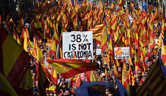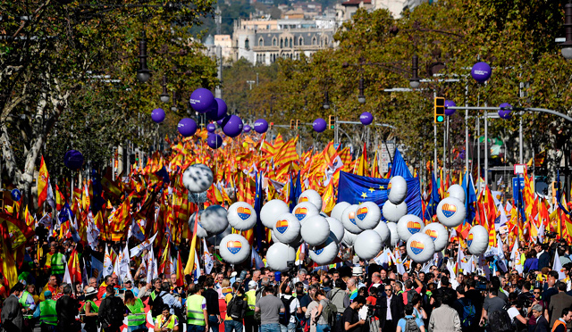 Cientos de miles expresaron su rechazo a la proclamación de la "República catalana" por parte del Parlamento regional.