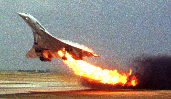 El 25 de julio de 2000, el avión Air France Concorde despegó con el fuego arrastrado desde su motor en el ala izquierda del aeropuerto Charles de Gaulle en París, el 25 de julio de 2000.