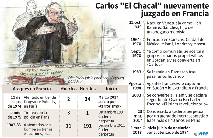 Ilich Ramírez fue condenado a cadena perpetua por el acto violento de1974 en París.