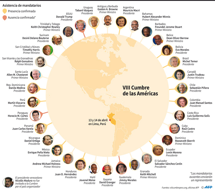 En tanto, en canciller cubano Bruno Rodríguez llegó a Lima para representar a la isla en la cumbre, según fuentes oficiales peruanas, lo que implica que no asistirán Raúl Castro ni Miguel Díaz-Canel, quien lo debería suceder en la presidencia en los próximos días.