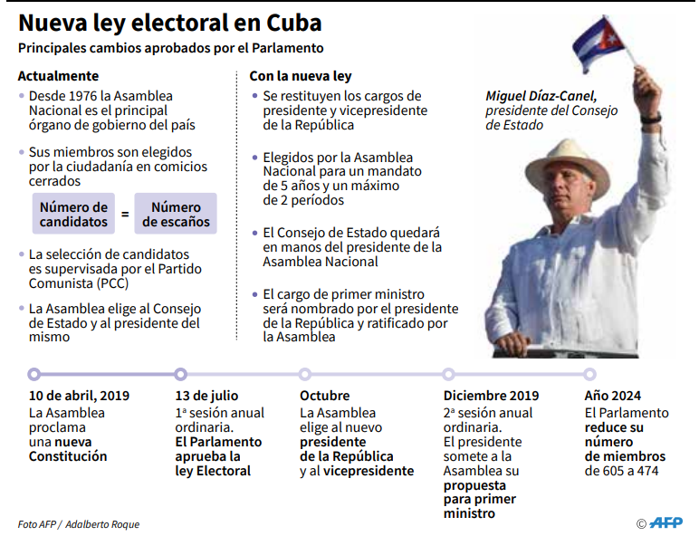 Cuba quedó lista para volver a un sistema de gobierno con presidente de la República y primer ministro tras aprobar este sábado una nueva ley electoral que mantiene en el Parlamento el poder para elegir altos cargos, bajo la mirada rectora del Partido Comunista.