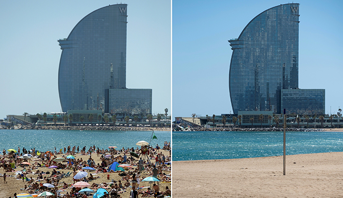 Vista general de una de las playas de Barcelona en España, (13 de agosto de 2019 - 13 de mayo de 2020).