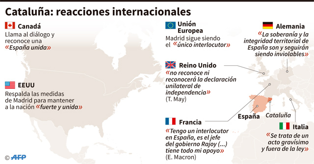 El lunes fue el primer día laborable desde que el parlamento de Cataluña declaró la independencia el viernes y el gobierno de Mariano Rajoy adoptó medidas destinadas a controlar la región -que gozaba hasta ahora de una amplia autonomía-, dos acciones sin precedentes en la España moderna.