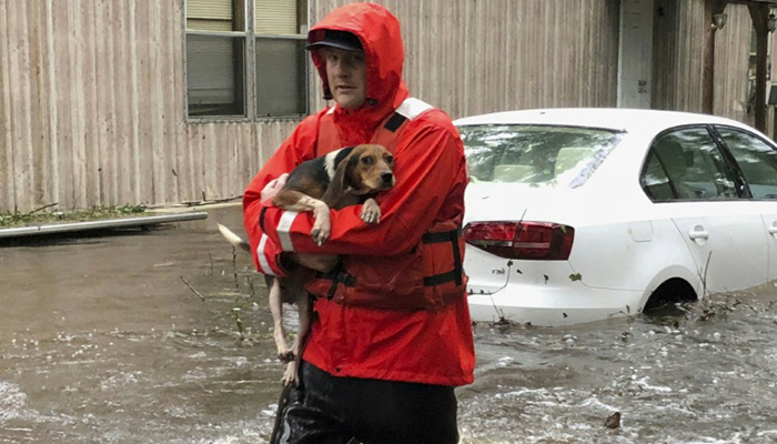 En Pollocksville, un pueblo de Carolina del Norte afectado por el desborde del río Trent, 21 personas y siete perros fueron evacuados por socorristas.