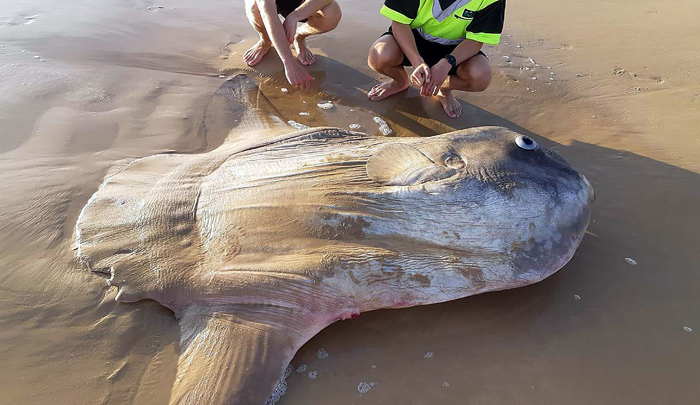 Hallan un pez luna gigante encallado en playa de Australia