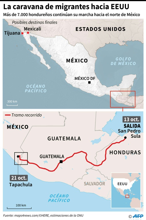 Todavía les faltan más de 3.000 km para alcanzar la frontera con Estados Unidos, según sus cálculos, que deben recorrer en un mes y medio aproximadamente. La ONU estima que unas 7.000 personas viajan en la caravana.