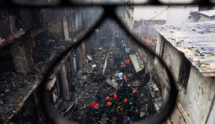 El incendio estalló hacia las 10:40 pm del miércoles en el barrio de Chawkbazar, una de las partes más antiguas de la ciudad donde abundan las calles estrechas.