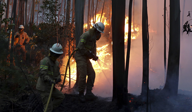Los bomberos combaten sin descanso el fuego en Portugal, que dejó 62 muertos