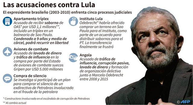 Lula fue acusado de ser el beneficiario de un apartamento tríplex en el balneario de Guarujá (Sao Paulo), ofrecido por la constructora OAS a cambio de su influencia para obtener contratos en Petrobras.