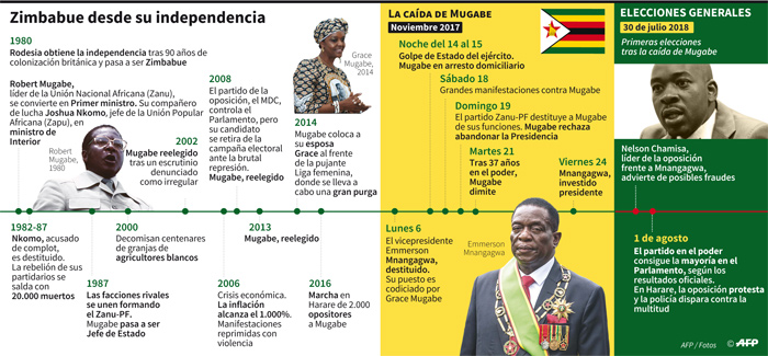 Desde su independencia de Gran Bretaña en 1980, el país solo ha tenido dos jefes de Estado, ambos de ZANU-PF: Mugabe y Mnangagwa.