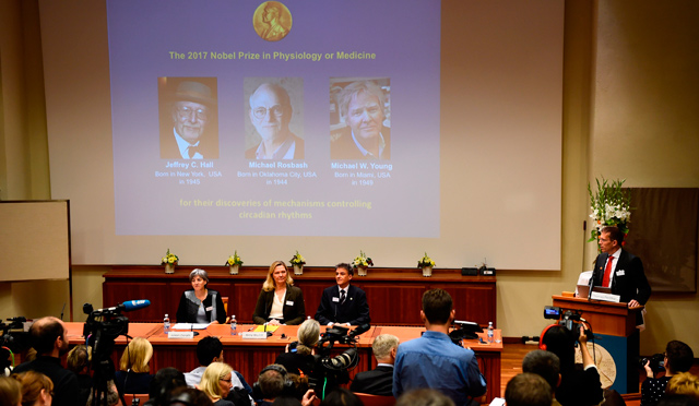 Jeffrey C. Hall, Michael Rosbash y Michael W. Young, fueron recompensados por "sus descubrimientos de los mecanismos moleculares que regulan el ritmo circadiano", anunció la Asamblea Nobel del Instituto Karolinska de Estocolmo.