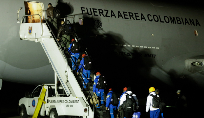 La tripulación de 18 personas encargada de traer a los connacionales está conformada por 4 pilotos, un copiloto y seis oficiales técnicos de la Fuerza Aérea Colombiana (FAC). Viajan dos epidemiólogos del Instituto Nacional de Salud (INS) y dos médicos, dos enfermeros y un psicólogo de la Cruz Roja Colombiana.