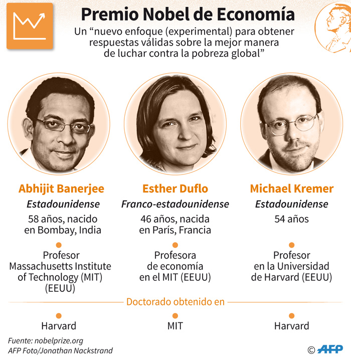 Tres economistas ganan Nobel por trabajos sobre la pobreza