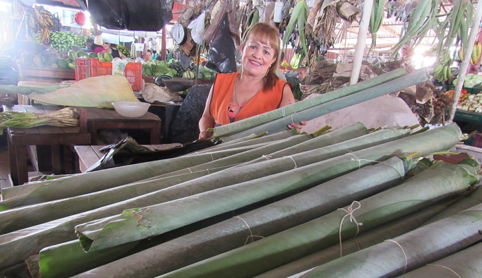 (Marilú Fernández, completó 40 años vendiendo hojas de bijao en la Nueva Sexta.)