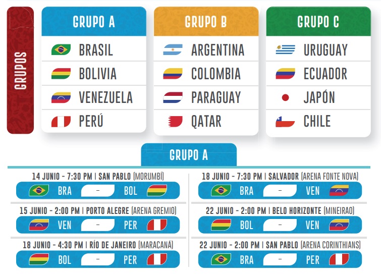 El encuentro inaugural será entre la anfitriona Brasil y la discreta Bolivia.