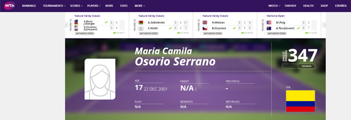 Osorio lidera la clasificación, luego del descenso de Mariana Duque, quien meses atrás comunicó su retiro del profesionalismo. Solo era cuestión de semanas para que la joven promesa nacional tomara la batuta del tenis femenino tricolor.