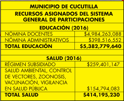 En 2016, la Gobernación a través del Instituto de Deportes de Norte de Santander, invirtió en escuelas de formación deportiva $8.083.800 y en el programa Supérate para juzgamiento, transporte e hidratación $8.258.844.