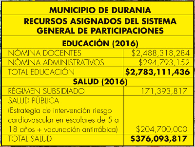 Programa de Alimentación Escolar, PAE, atiende 741 niños, niñas y adolescentes matriculados en los 18 establecimientos educativos de Durania, el ciento por ciento de los niños reciben alguna de las dos modalidades. En el primer semestre de 2017, se han entregado 33.130 almuerzos y 18.683 raciones tipo industrializada, con una inversión de $142.074.190, y se suministró menaje y equipos en las sedes educativas.