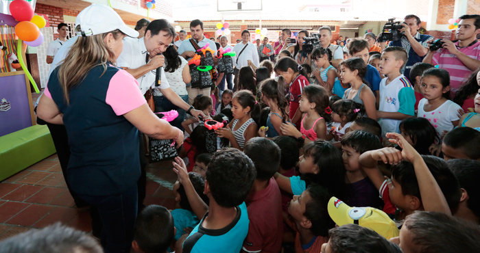 A 300 menores en 2016, les entregó un detalle en la celebración del Mes de la Niñez, acompañada del gobernador William Villamizar Laguado.