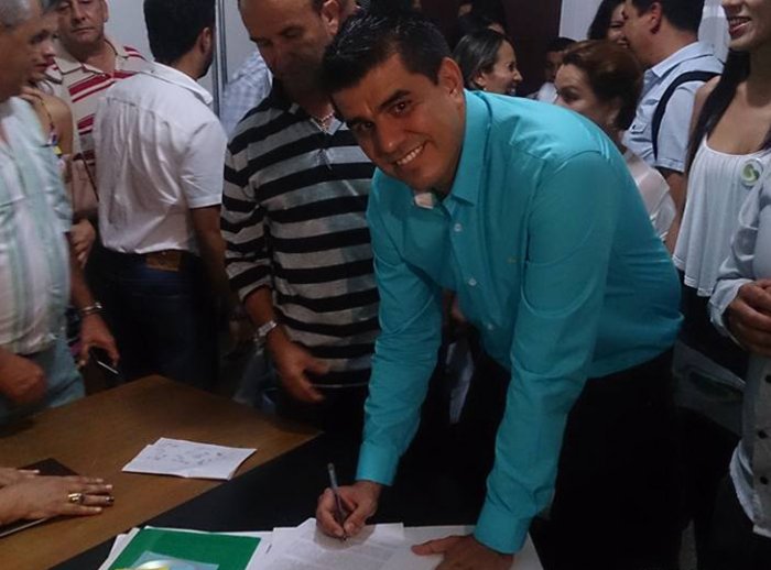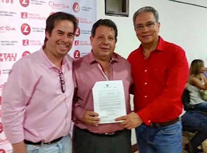 Jesús Gandur del partido Liberal compañado del senador Andrés Cristo y el representante a la Cámara Neftalí Santos durante la inscripción ante la Registraduría. / Foto: