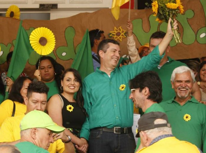 Yury Alfonso Carrascal Gómez de la Alianza Verde y Polo Democrático acompañado por simpatizantes que alzan también el girasol. / Foto: