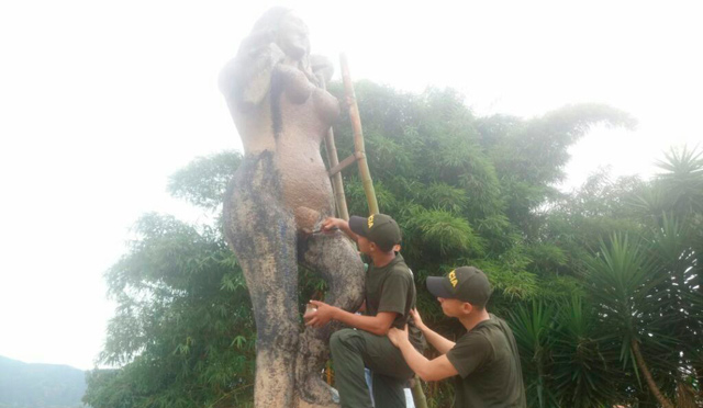 La Policía unió esfuerzos con la comunidad para embellecer la estatua de la indígena Leonelda Hernández.