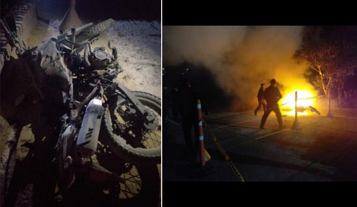 En medio de los disturbios fue quemada una moto, al parecer, de uno de los vigilantes de la universidad.