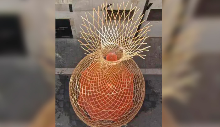El proyecto de los estudiantes tiene forma de jarrón y es elaborado en bambú.