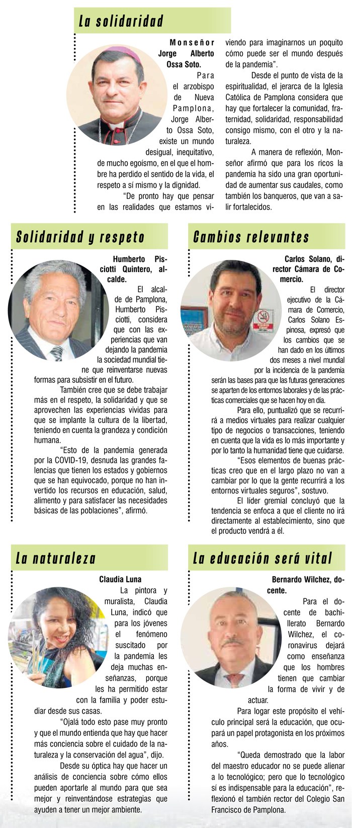 Los dirigentes, educadores, religiosos y personajes influyentes del municipio de Pamplona, opinaron lo siguiente: