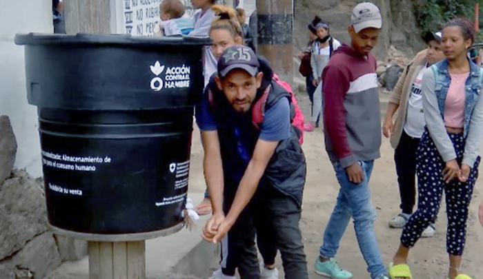 Duque Vera, indicó que decidió instalar un tanque con agua potable para que los migrantes cuando vayan a saludar, recibir los alimentos o realizar otro tipo de acciones, tengan las manos limpias.