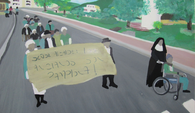 (Marcha de ancianos del Asilo San José de Pamplona, cuando protestaron por el no pago de aportes de la Alcaldía.)