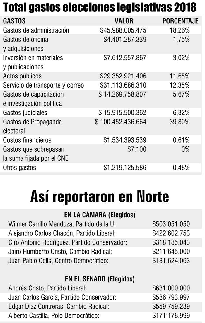 Solo en Norte de Santander, los cuatro senadores y cinco representantes a la Cámara elegidos para el periodo 2018-2022 destinaron un poco más de $3.585 millones en los tres meses que se prolongó la campaña.