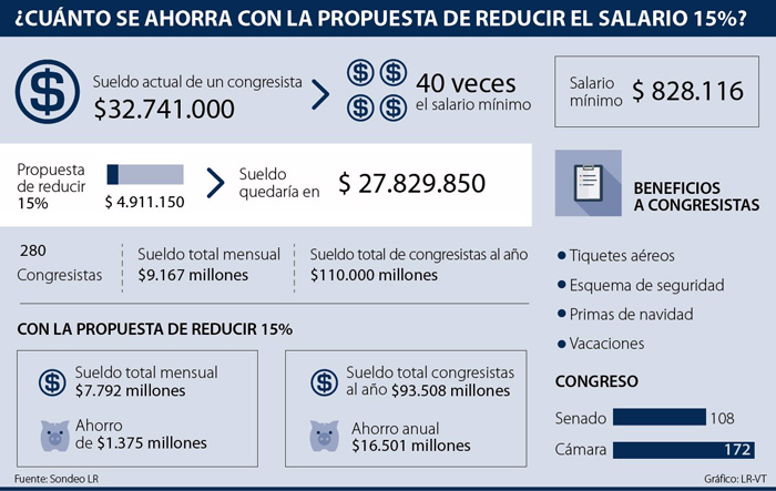 Bajar salario a congresistas 15% ahorraría $16.500 millones al año