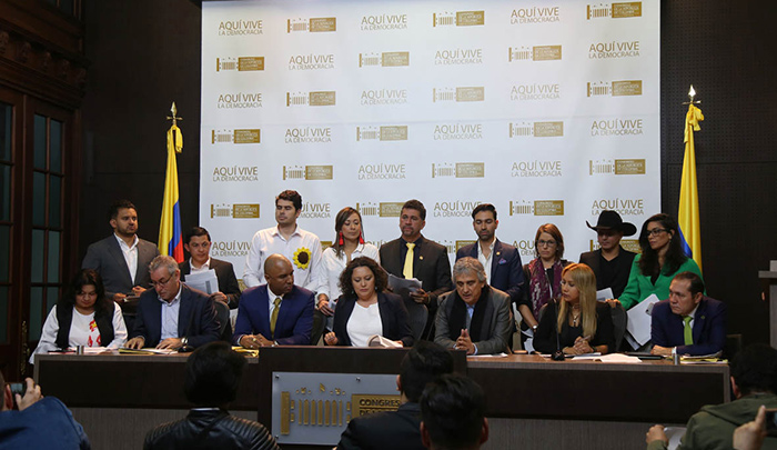 La Constitución, incluso, ordena que el Congreso se instale por derecho propio si está en receso, para que ejerza ese control. Pero no, en pleno periodo ordinario de sesiones no sesionó, porque la mesa directiva, seguramente aconsejada por el Gobierno para que no lo controláramos, no quiso convocarlo, no nos facilitaron transportarnos desde la provincia, nos confinaron. Al mes llamaron a sesiones virtuales que son “pura pantalla”, son sesiones de mentiras, sin debates, sin control político, manipuladas por quien preside la reunión con un botón de control, que maneja el curso de la reunión como si fuera un “disc jockey”. Los congresistas permanecemos aislados en las casas, dispersos por el país y como metidos dentro de peceras sin poder decir “ni mu”. Debiéramos estar en el Capitolio trabajando, pero no nos dejan, no tenemos democracia. Como cualquier dictador, el presidente Duque hace lo que le viene en gana, no tiene control. Las mayorías del Congreso lo secundan en esto. Están arrodilladas.