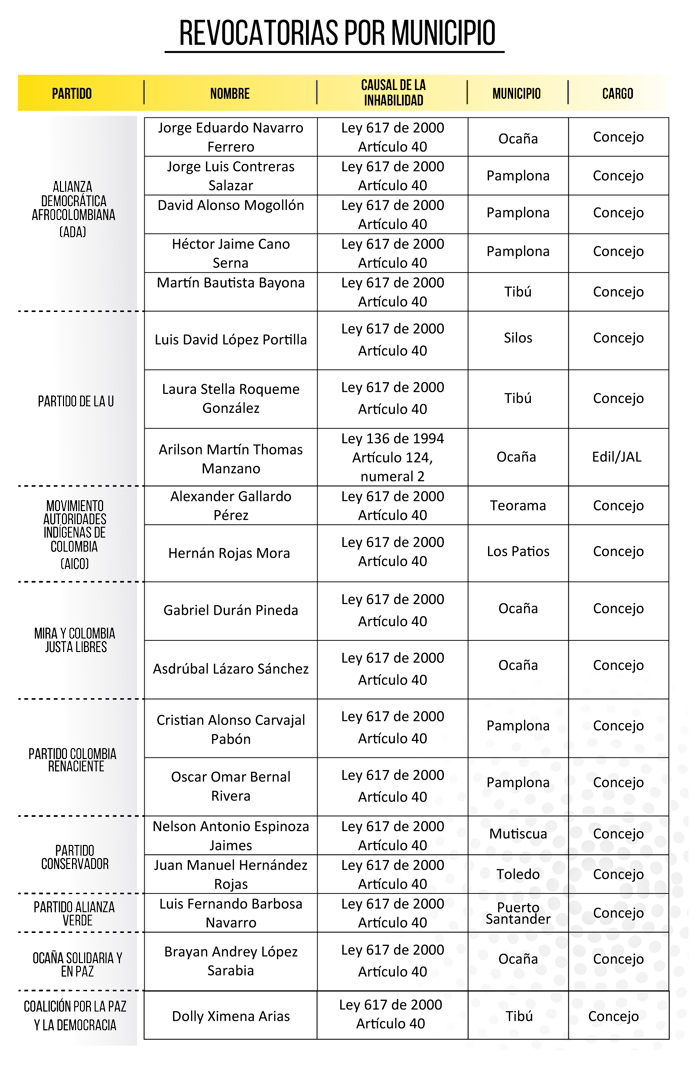 Hasta el momento, los magistrados del Consejo Nacional Electoral (CNE) han resuelto que en Norte de Santander ya son 19 los aspirantes a concejos y Juntas Administradoras Locales que no tendrán posibilidad de aparecer en los tarjetones, pues no cumplen los requisitos para postularse a cargos de elección popular.