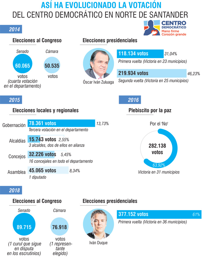 Las elecciones locales y regionales, el plebiscito por la paz en el que impulsaron el ‘No’ y las pasadas elecciones al Congreso, también muestran una evolución en la votación y respaldo hacia el uribismo en Norte de Santander.