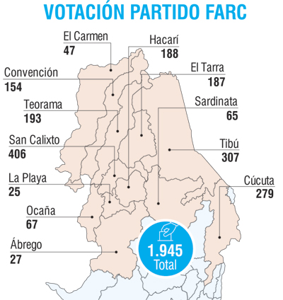 Curiosamente, la mayoría de esos votos (1.945), los conquistó en Cúcuta, Ocaña y los municipios del Catatumbo, donde hicieron presencia armada hasta antes del acuerdo de paz con el Gobierno Nacional.