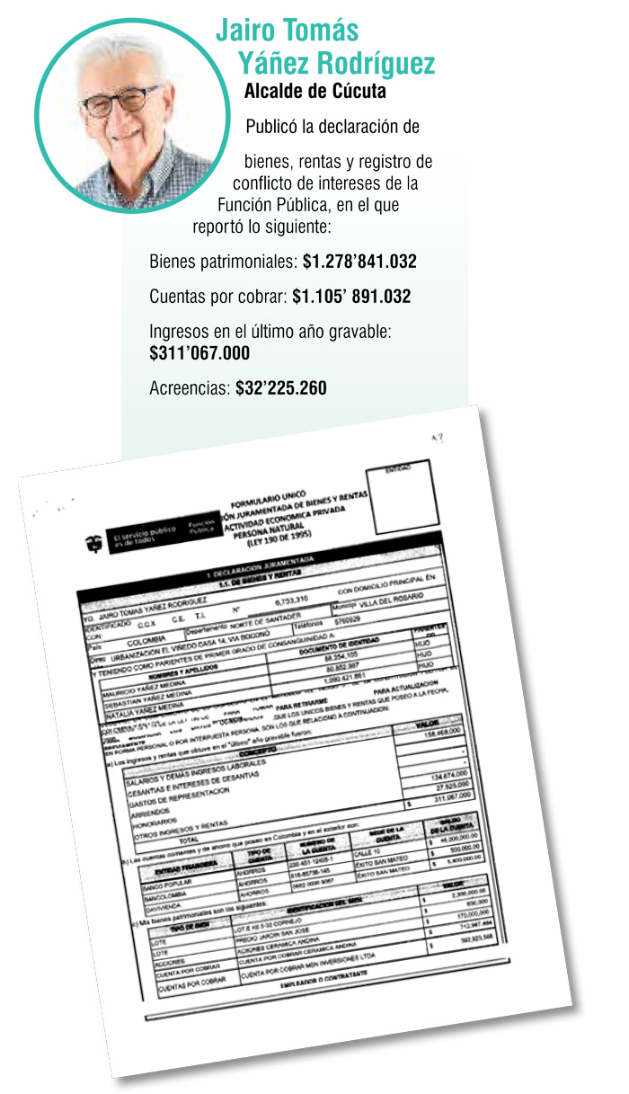 De los principales municipios del área metropolitana solo han hecho pública la información los mandatarios de Cúcuta, Jairo Tomás Yáñez Rodríguez; y de Villa del Rosario, Eugenio Rangel Manrique.
