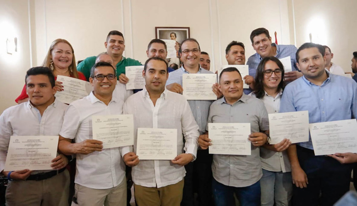 (Varios de los 19 concejales que integrarán la corporación municipal en el periodo 2020-2023, recibieron su credencial de parte de la Registraduría.)