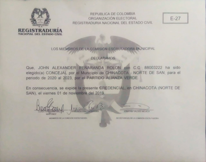 La decisión de nombrarlo como la primera autoridad de esta población nortesantandereana, se tomó luego de que esta delegación de jueces y notarios expidiera la resolución N.003, en la que se determina la improcedencia de los recursos, que fueron interpuestos con el fin de apelar el resultado parcial.