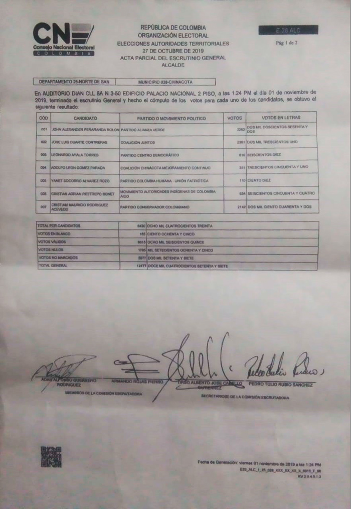 De acuerdo con el escrutinio definitivo de la Registraduría Nacional, Duarte obtuvo 2.301 votos.